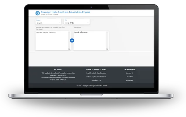 Devnagri is one of the most reputed and finest names in neural machine translation. We have the best machine translation engine in Indian languages to get meaningful and exact translations. We aim at reducing the errors and quality issues that one often encounters using translations from humans. Our system is intricately designed and consists of advanced algorithms to bring contextual results meticulously.